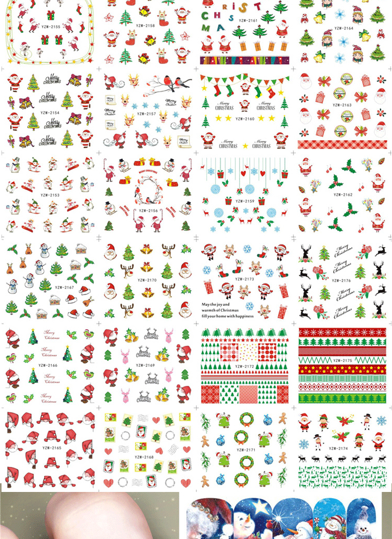Оптовая продажа, рождественские наклейки для ногтей, Санта-Клаус, Р...