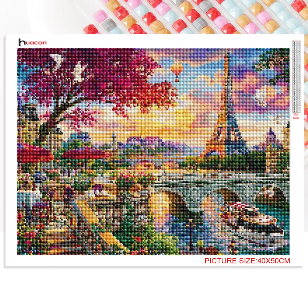 Алмазная мозаика Huacan 5D с изображением города, Эйфелевой башни, картины с изображением пейзажа, вышивка крестиком, домашний декор
