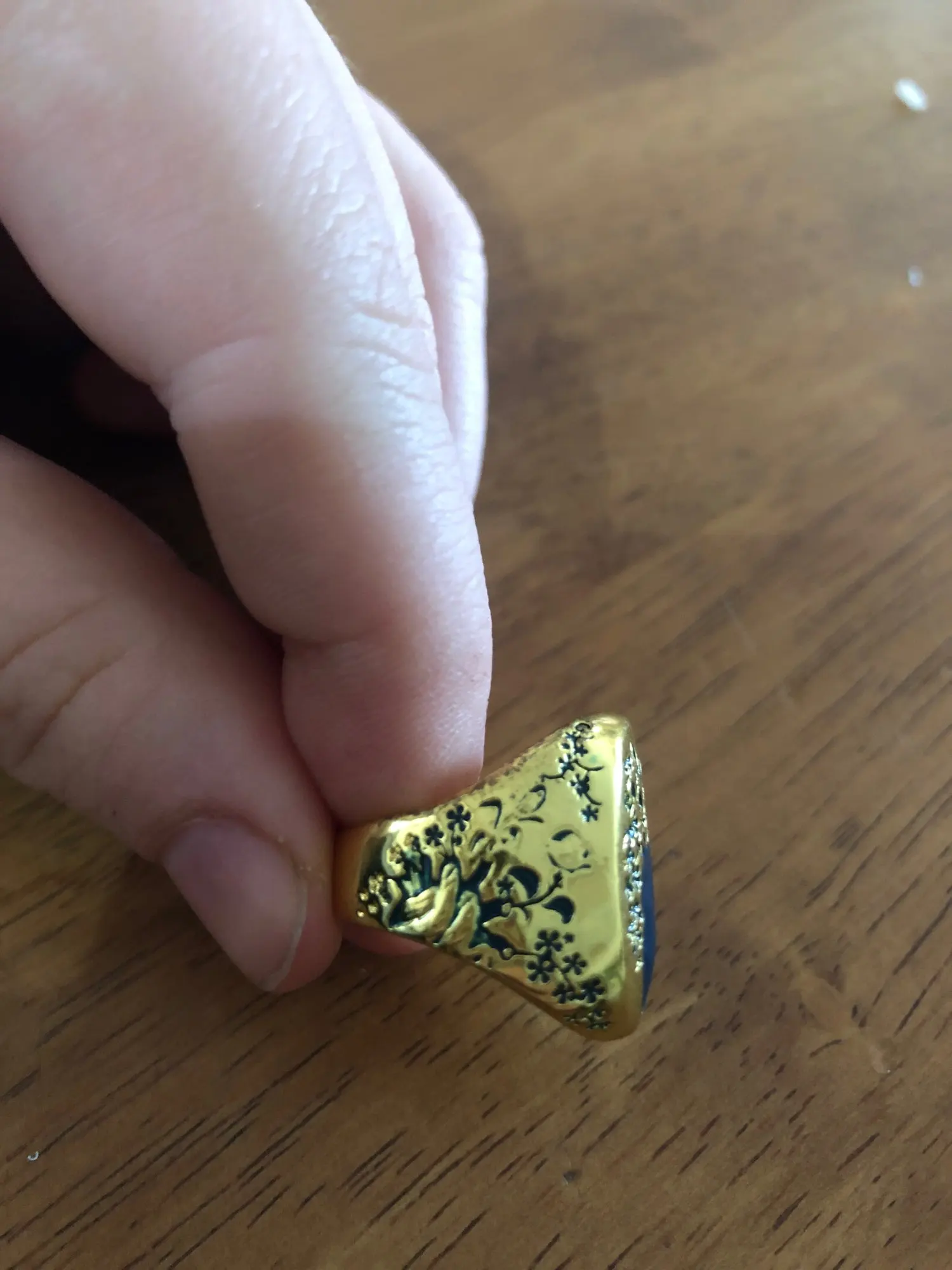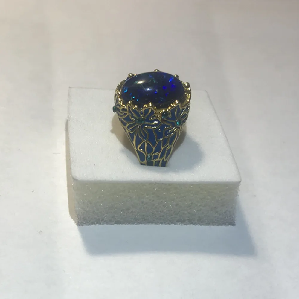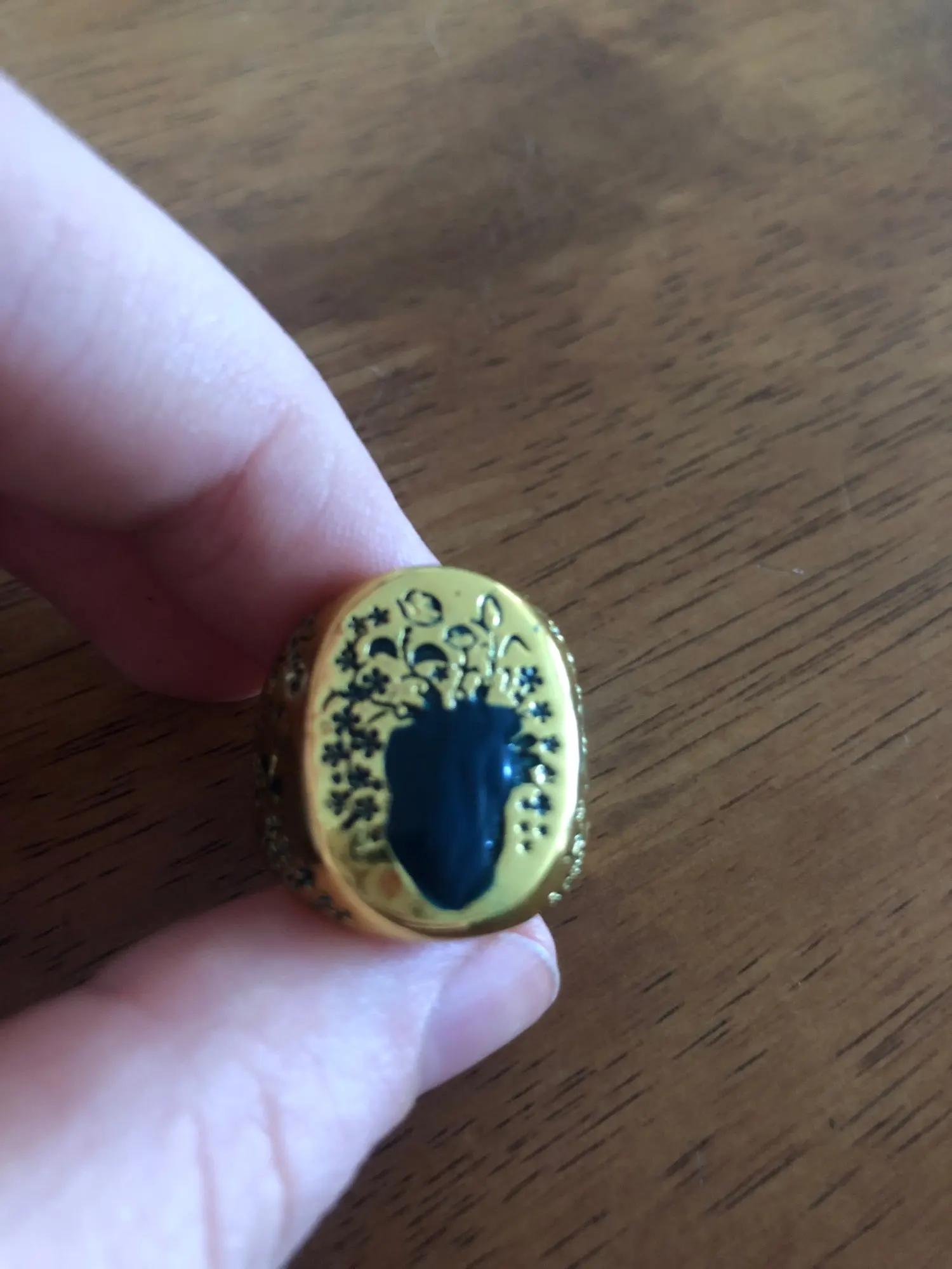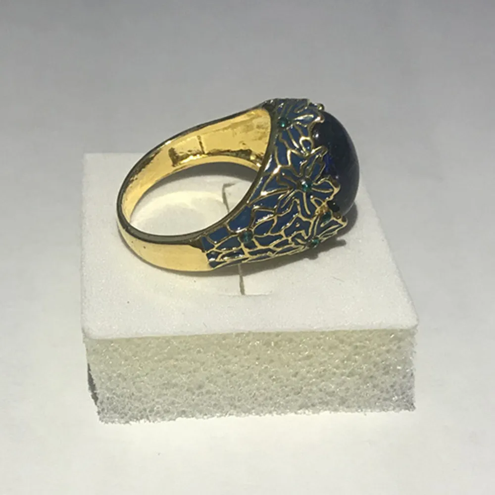 Необычное , стильное кольцо. Единственный минус, синяя краска рисунка смазалась и вышла за границы одного цветка.