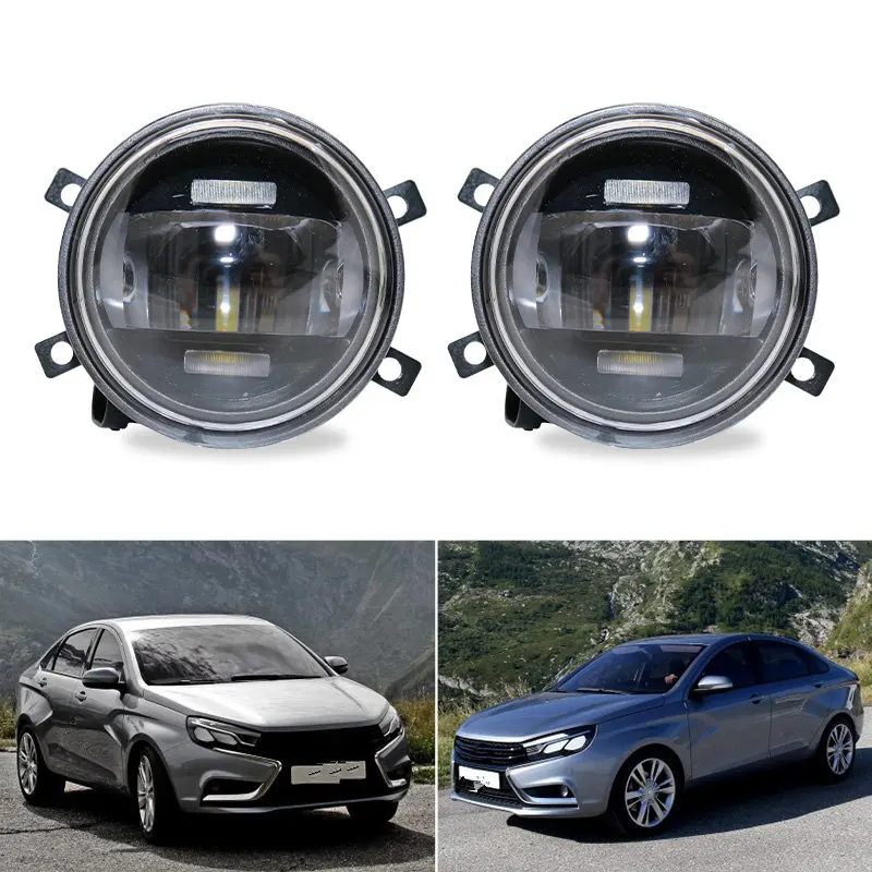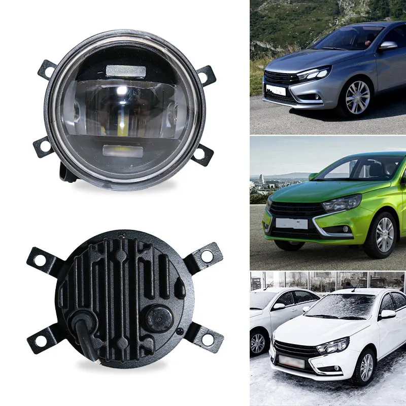 Противотуманные фары круглые светодиодные для Лада Веста, Рено Логан, Форд Фокус 2 рестайлинг, Пежо, Ситроен, Митсубиси паджеро, Аутлендер, 1 пара