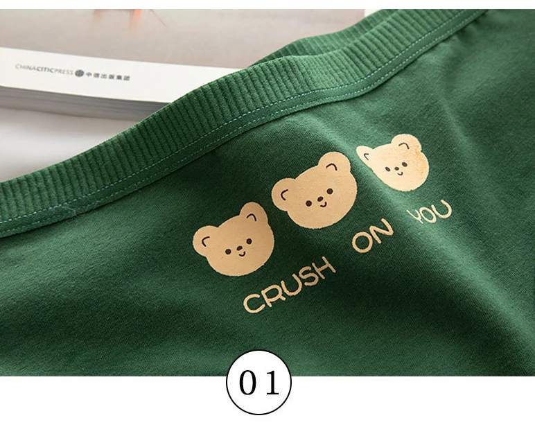 Нижнее белье женское рисунок с милым медведем, хлопковые трусы зеле...
