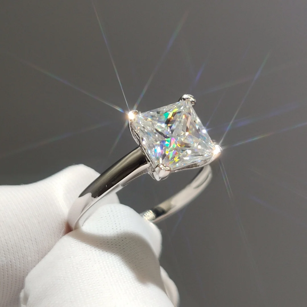 Кольцо Geoki из серебра 925 пробы, с квадратным муассанитом 2 Ct, VVS1