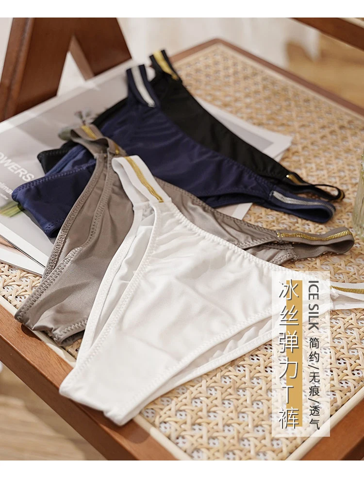 Женские сексуальные трусики CINOON, шелковое нижнее белье с низкой талией, дышащее нижнее белье, Роскошное однотонное соблазнительное женское нижнее белье