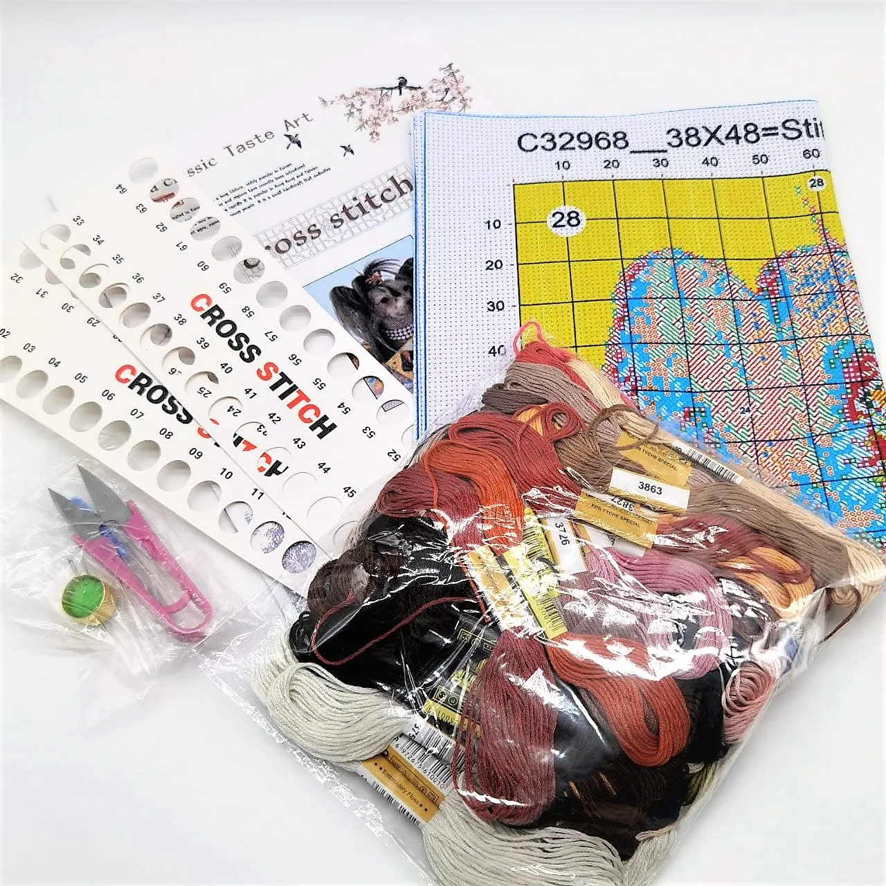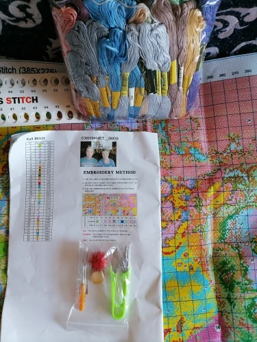 Набор очень понравился. Вышивка крестом - это не сложно и даже интересно, если вы будете вышивать то, что вам нравится и что вы любите. Я выбрала для вышивки фото своей любимой собачки. Размер выбрала 30см на 40см , нитки хлопок 11CT , отправила фото продавцу и через три дня моя вышивка была уже в пути. Вышивка пришла быстро , в фирменном плотном пакете на кнопке с крючком. Можно покупать на оригинальный подарок. В наборе всё, что необходимо для создания уникальной вышитой картины своими руками: плотная канва с вашим изображением, нитки: мне пришло 44 моточка в 36 цветов, 3 иглы, органайзеры 2 шт , распарыватель, ножницы, наперсток, нитковдеватель, подробная инструкция именно для вашей вышивки. Изображение на канве точно совпадает с фото, качество отличное , всё ярко и хорошо видно. Рекомендую!