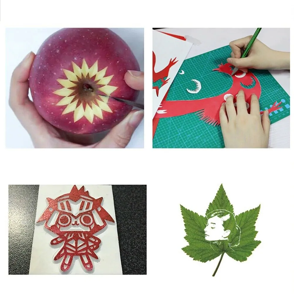 * Широкое применение: набор лезвий больше подходит. Например, резка дерева, картона, бумаги, пластика, ткани, кожи и пенопласта. Лезвие очень острое, будьте осторожны при использовании и замените лезвие.