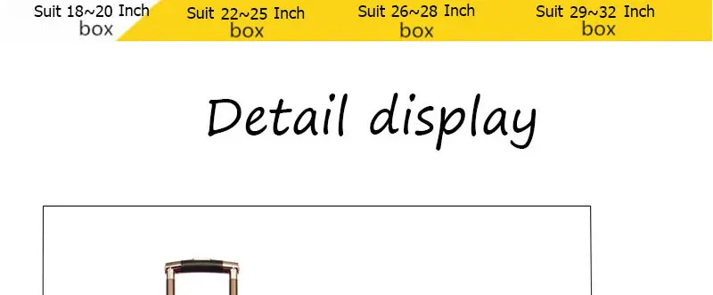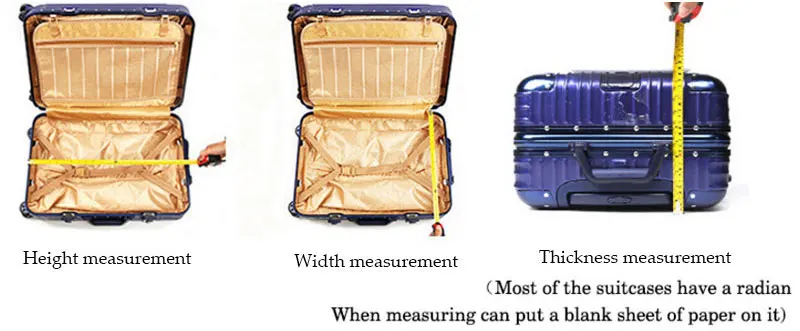 Пожалуйста, выберите соответствующий размер в соответствии с размером таблицы.Таблица размеров-это размер чемодана.Используйте высоту, ширину и толщину, чтобы выбрать более точный.Высота измерения не включает колеса.Если вы не знаете, как выбрать размер, пожалуйста, свяжитесь со мной. Я дам вам совет.