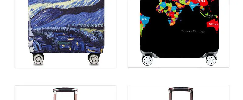 Пожалуйста, обратите внимание: этот товар-просто чехол, а не чемодан. Он используется для защиты чемодана и предотвращения царапин и загрязнения чемодана. Тонкая работа и качественная ткань делают его качественным продуктом. Можно мыть водой, не выцветать и использовать повторно. Богатые узоры позволяют определить свой багаж с первого взгляда и приносить удобство вашим путешествиям.