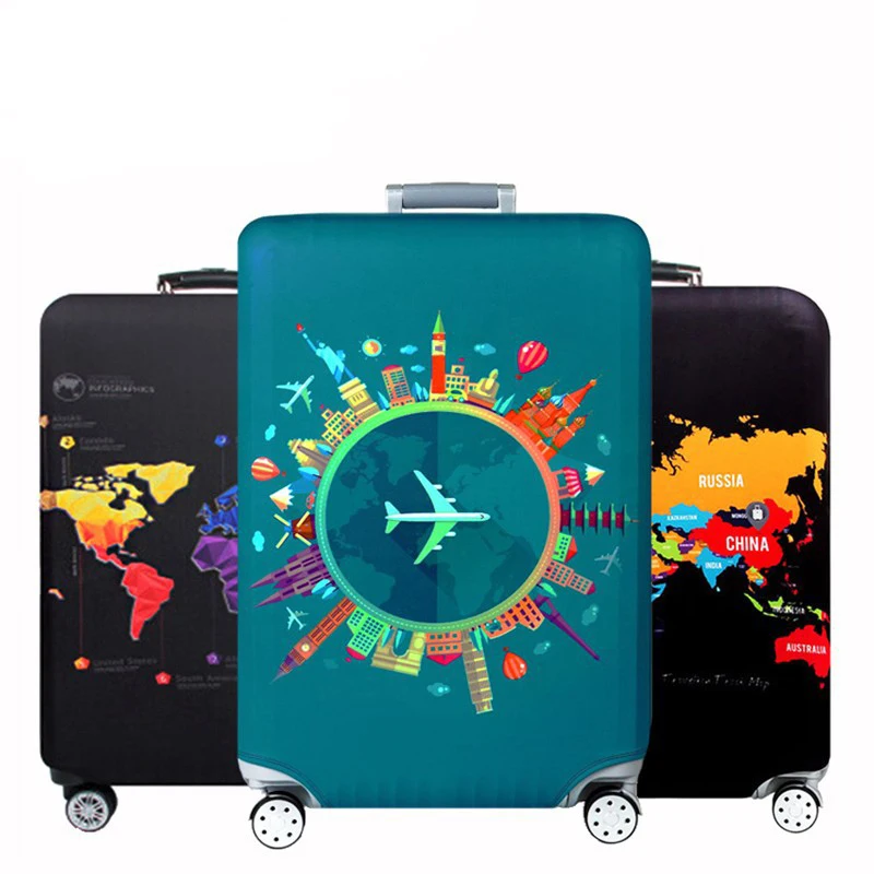 Защитный чехол для чемодана, эластичный чехол для чемодана размером 18-32 дюйма с изображением карты мира
