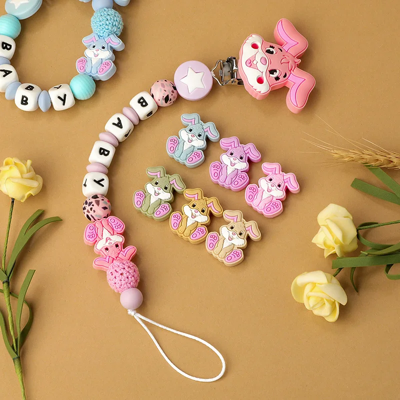 TYRY.HU 50 шт. силиконовые бусины, мультяшный кролик, черепаха, бусины радужной формы, без БФА, детская цепочка для соски, аксессуары сделай сам, молярные игрушки