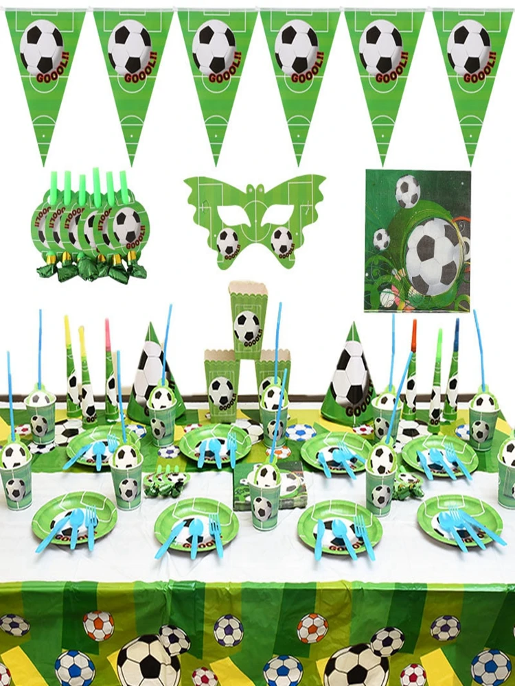 Футбольная тема, Детский комплект для украшения дня рождения, чашка, тарелка и соломенная бандажная сумка, полотенце для вечеринки