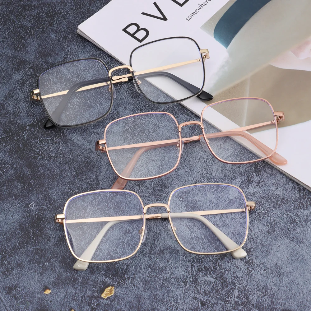 Очки унисекс металлические, плоские, большие, квадратные, с декором в виде бриллиантов для близорукости