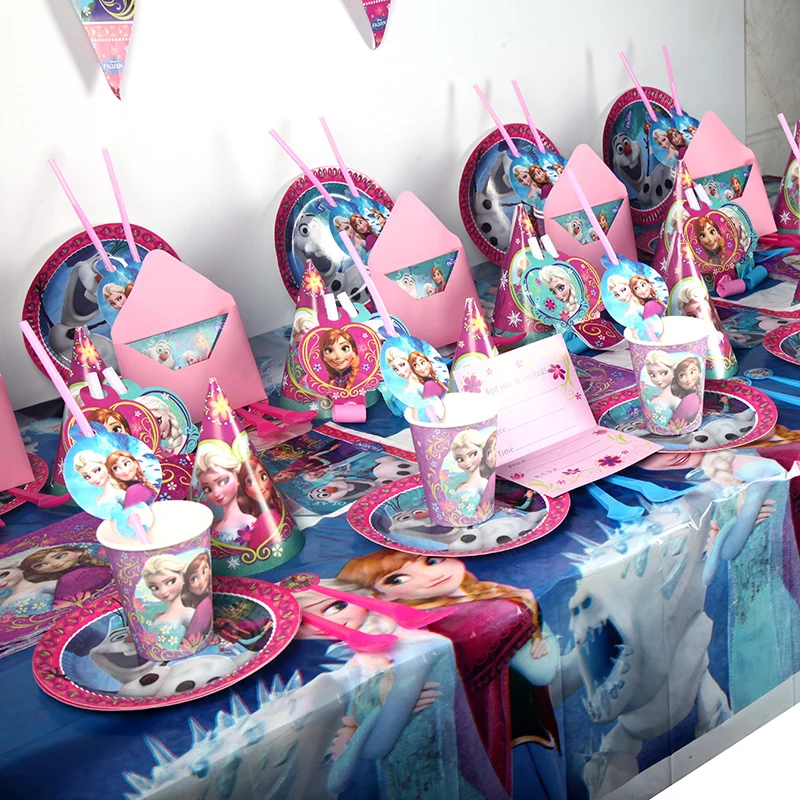 Disney, Холодное сердце, Анна, Эльза, принцесса, искусственное украшение на стол, Детская одноразовая посуда, принадлежности для торта для девочек