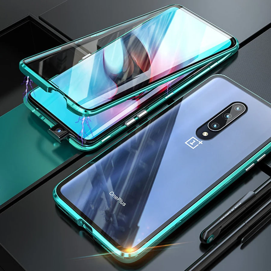 Магнитный чехол 360 дюйма для Oneplus 9 8 7 Pro, полностью металлический двойной чехол из закаленного стекла Oneplus9 Pro One Pus 6T 9 8 7T 8T Oneplus8, чехол s