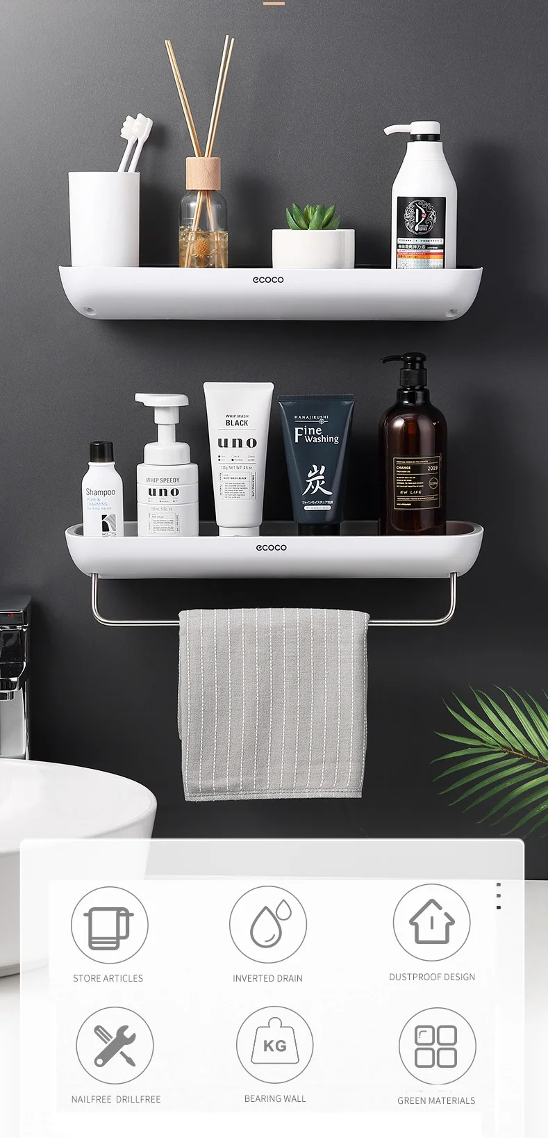 Ecoco настенные полки для ванной комнаты, кухонный Органайзер, домашняя Полка для полотенец, полка для шампуня с полотенцем, стойка для хранения ванной комнаты