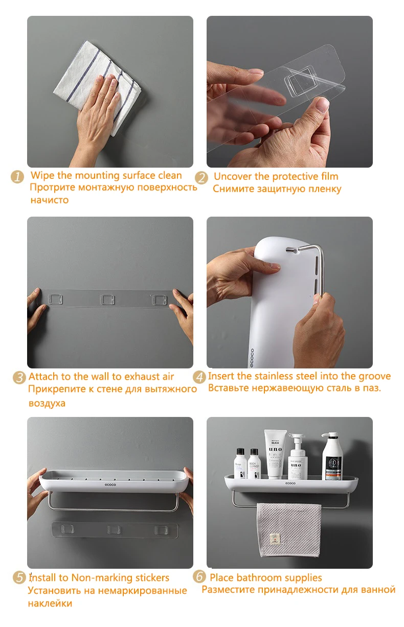 Настенные полки для ванной комнаты ecoco, кухонный органайзер, полка для домашних полотенец, полка для шампуня с вешалкой для полотенец, полка для хранения в ванной комнате