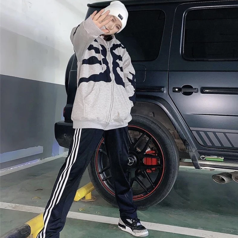 Толстовка Y2K в стиле Харадзюку на молнии, Мужская свободная толсто...