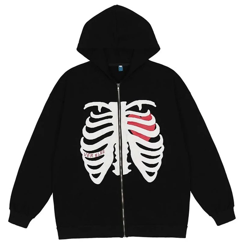 QWEEK, толстовка на молнии со скелетом, Женский Готический Топ, ули...