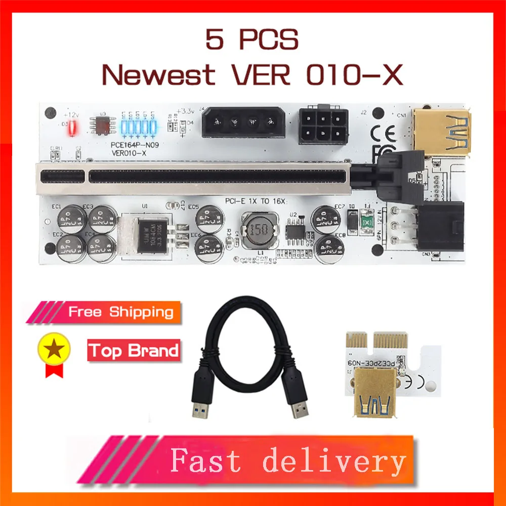 5 шт., Райзер VER010 USB 3,0 PCI-E, Райзер VER 010 PLUS, экспресс, 1X 4x8x 16x, Райзер pcie, Кабель-адаптер, карта SATA, 15 контактов на 6 контактов питания