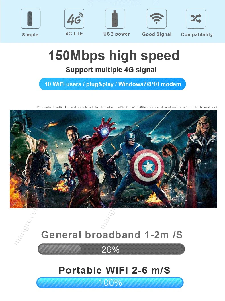 1. Наш 4G Роутер/модем поддерживает только универсальные обычные sim-карты. Для некоторых заблокированных sim-карт, контрактные sim-карты, которые операторы не позволяют использовать на Wi-Fi маршрутизаторах, или только позволяют использовать на своих авторизованных устройствах. Этот продукт может не работать. (Если ваша sim-карта не имеет доступа к Интернету, пожалуйста, не паникуйте. Обычно вы меняете универсальную sim-карту другого оператора, тогда она будет работать. Или вы можете связаться с нами для получения помощи.)2. Знания о скорости 4G. В практическом повседневном использовании, 4G WiFi маршрутизатор обычно обеспечивает 1 - 10 м/с скорость загрузки для пользователей WiFi. Для обычных пользователей достаточно смотреть видео, играть в игры и т. Д.Топовая емкость чипсета 4G маршрутизатора составляет 150 м, а теоретическая Максимальная скорость базовой станции 4G-150 м. Однако базовая станция 4G предоставляет услуги многим пользователям 4G одновременно, вместо того, чтобы предоставлять полную пропускную способность 150 м одному пользователю и силу сигнала 4G, ограничение sim-карты и окружающая среда также повлияют на скорость сети.Если невежественный пользователь стремится к максимальной теоретической скорости и любит использовать неточное приложение или программное обеспечение для проверки скорости сети, пожалуйста, не покупайте. Товар на рынке не будет соответствовать таким требованиям. Спасибо.