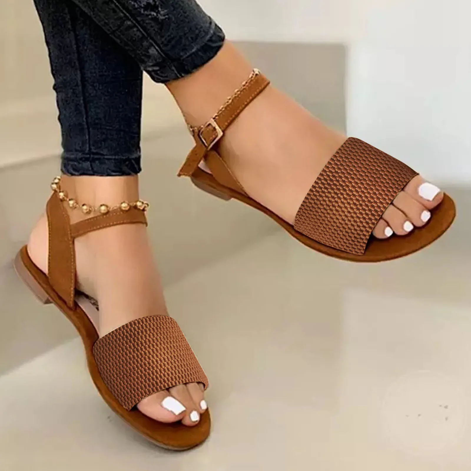Женская модная летняя однотонная Пряжка большого размера плоские повседневные босоножки