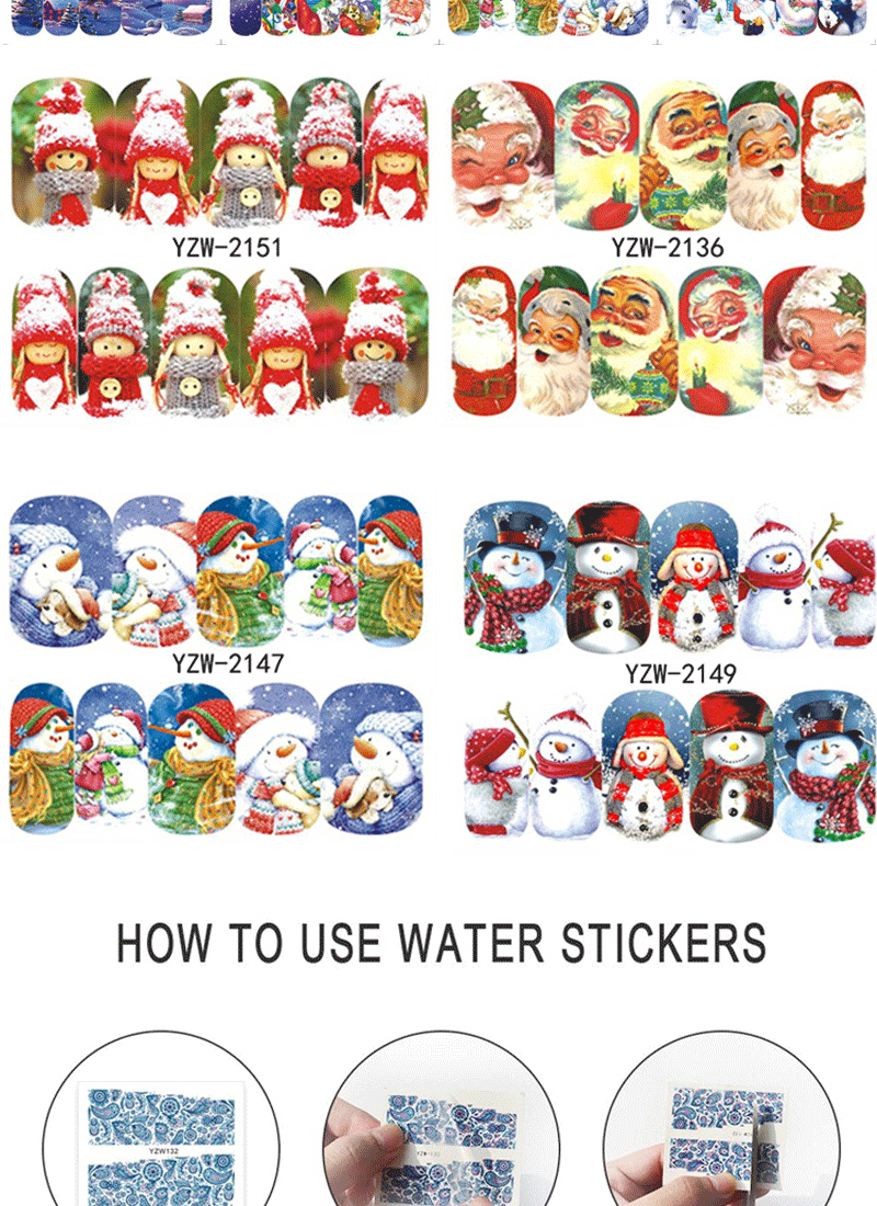 Оптовая продажа, рождественские наклейки для ногтей, Санта-Клаус, Р...