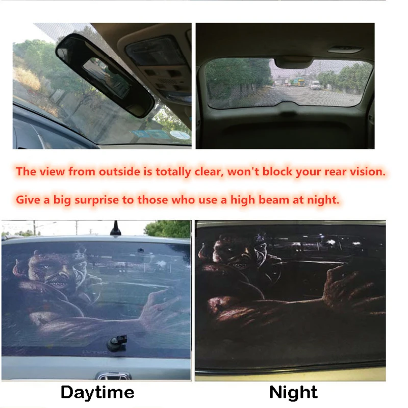 * Сетчатая пленка One way vision (вид снаружи полностью ясен, не блокирует заднее видение)* Подходит для заднего лобового стекла автомобиля, окон* Клейкая конформируемая пленка, она не повредит ваше стекло и не оставит никаких остатков позже, когда вы удалите это.* Не выцветает, не трескается, не шелушивается, когда правильно устанавливается* Легко обернуть и удалить, не вредит вашему автомобилю * 2-3 года гарантииCASE1: Когда вы едете ночью, автомобиль позади включится дальнего света, он будет видеть 3D Скелет на вашем заднем стекле, который будет хорошим опытомCASE2: красивая наклейка на окно для вашего дома или офиса придаст вашей комнате освежающий вид, создавая волшебную атмосферу; Она будет отличной для вашего декора; немного забавно для вашей ванной комнаты.Флуоресцентный-Размер: 130 см * 70 см (51,18*27,56 дюйма)-Материал: ПВХ с односторонним видением-Упаковка 1 шт.