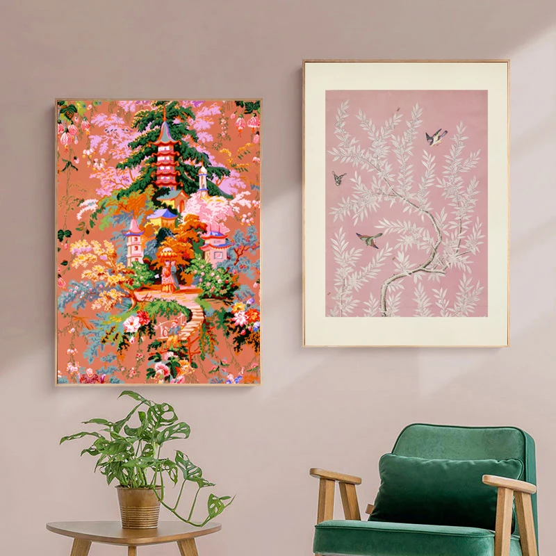 Плакат с пионами, цветущей вишни, традиционными азиатскими принтами, для домашнего декора комнаты, французский стиль, настенный китайский арт, китайская живопись на холсте