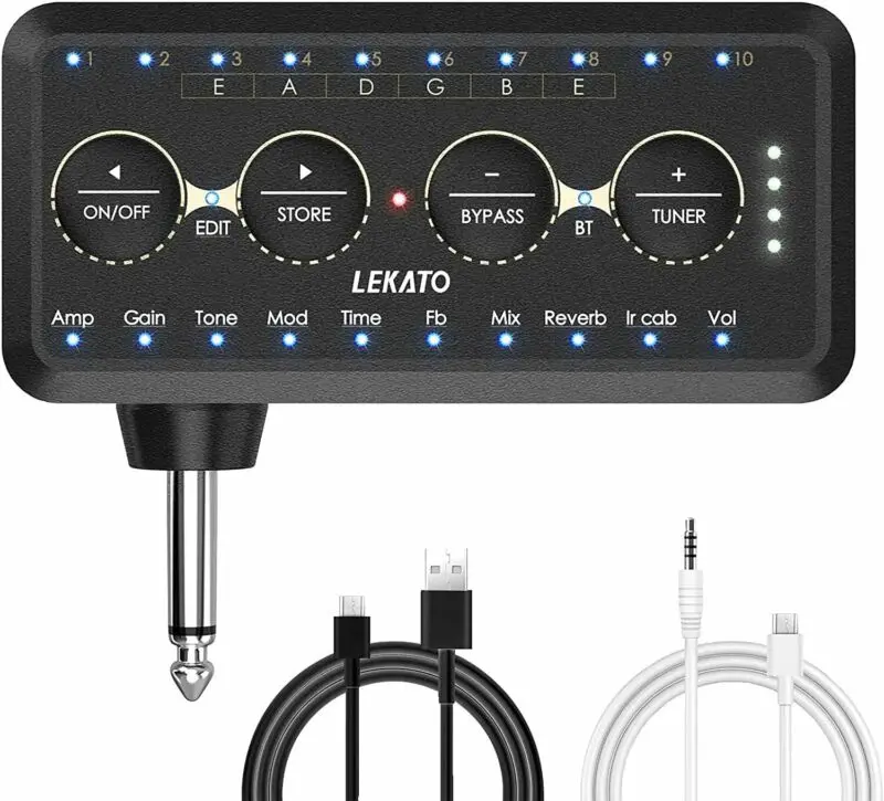 Lekato Беспроводная мультиэффектная электрогитара, усилитель для наушников, усилитель, запись музыки, режим байпаса, эффект искажения