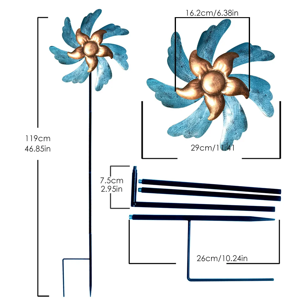 【Outdoor Decorations】The 12 дюймовое металлическое Декоративная мельница красивый и продуманный в дизайне. Это отличный выбор для украшения двора. Его легко увидеть и оценить прохожие, но это не помешает соседям. Расслабьтесь и смотрите на открытом воздухе на солнечном крыльце или во дворе. Он будет отлично смотреться в любой ситуации.