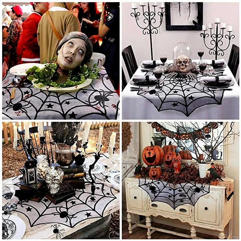 Скатерть в виде паутины для Хэллоуина, декоративное украшение для Хэллоуина, кухни, обеденного стола, домашней комнаты, декоративный реквизит