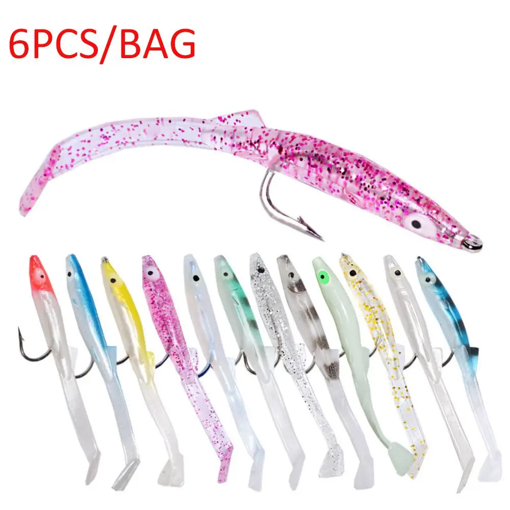6 шт.компл. прочная силиконовая светящаяся рыболовная приманка в виде червя с бородкой, рыболовная приманка, свинцовая Мормышка, искусственная Мягкая приманка