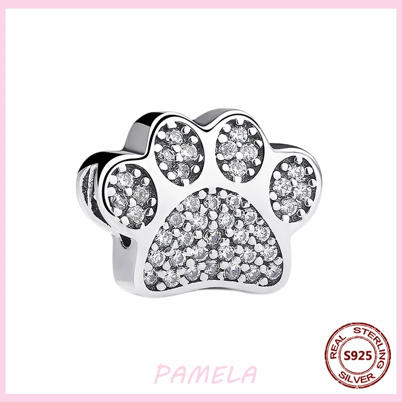 PAMELA 925 Стерлинговое Серебро собака Лапа фотоэлемент милый щенок животное Шарм DIY для оригинальных браслетов Pandora ювелирные изделия для женщин подарок