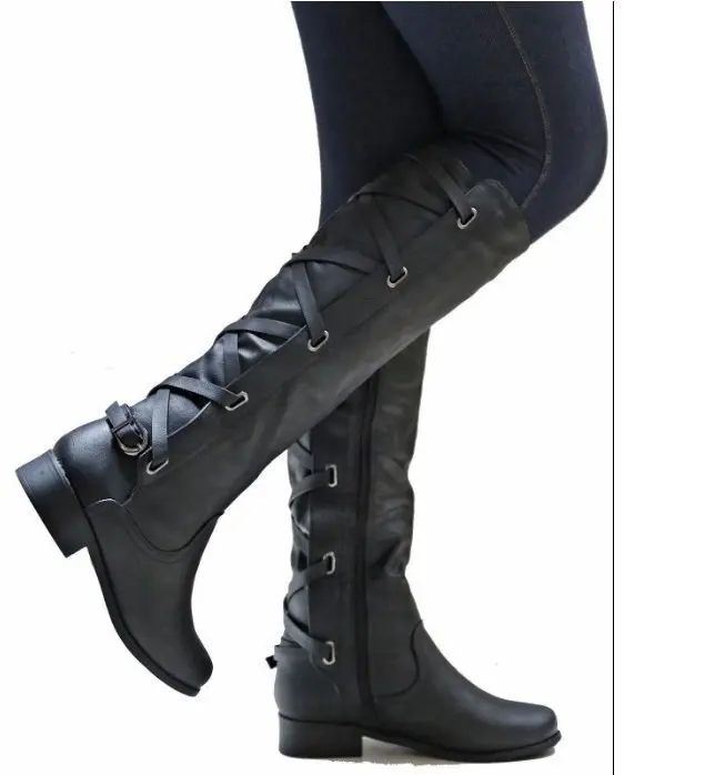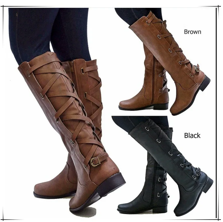 Женские повседневные сапоги до колена, на платформе и квадратном каблуке, на молнии, большие размеры 35-43, Осень-зима