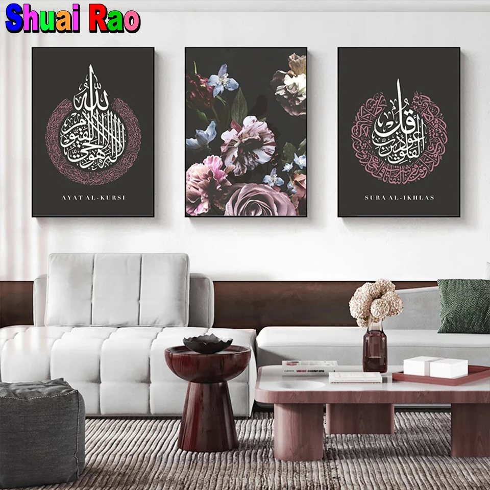 Алмазная вышивка сделай сам с розовыми цветами, мозаика, арабская каллиграфия, религия, украшение для мусульманской мечети