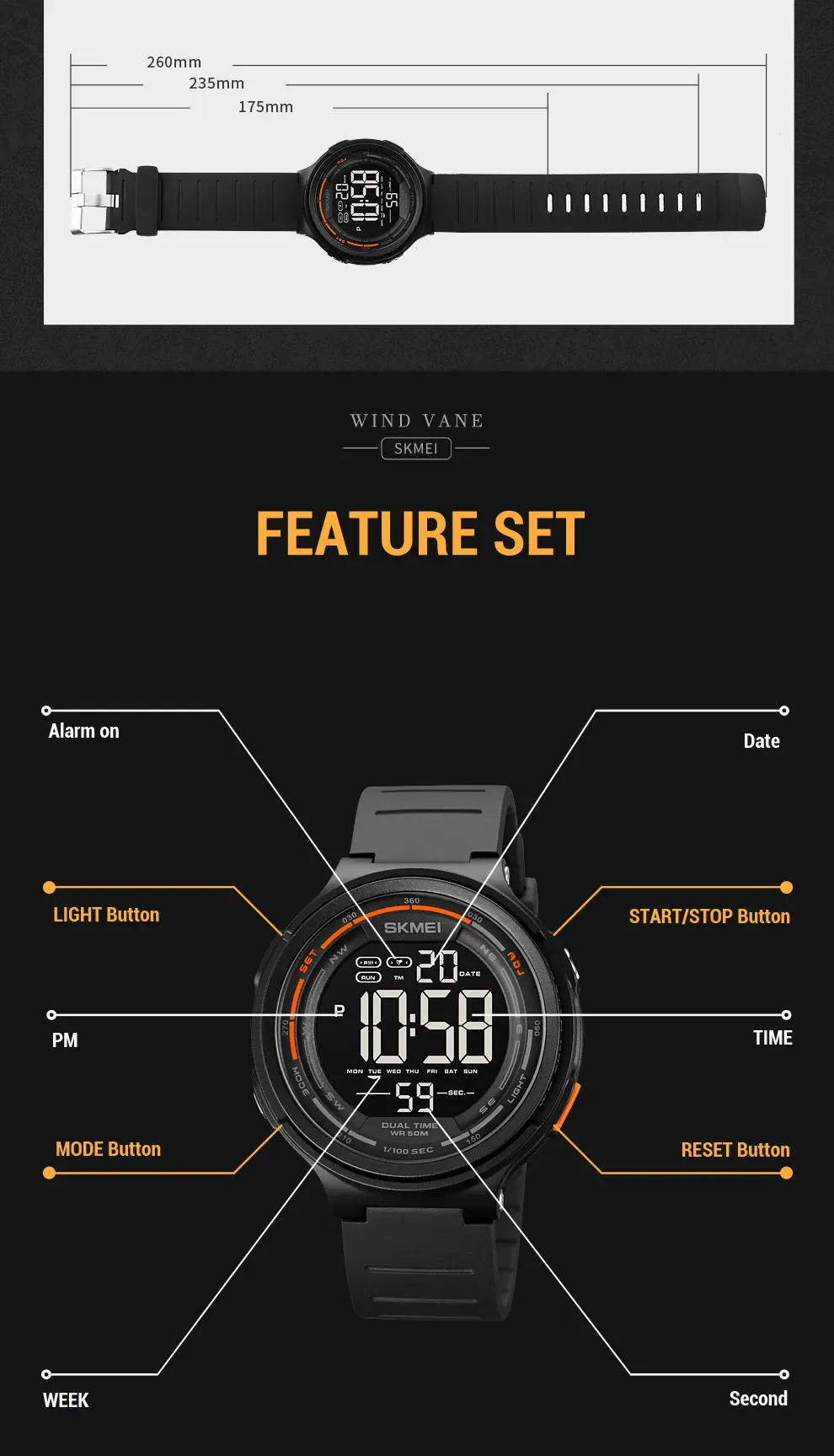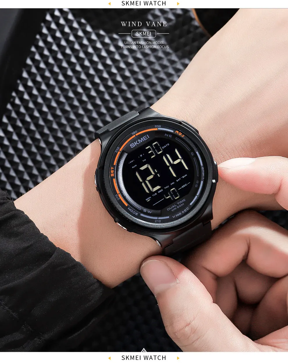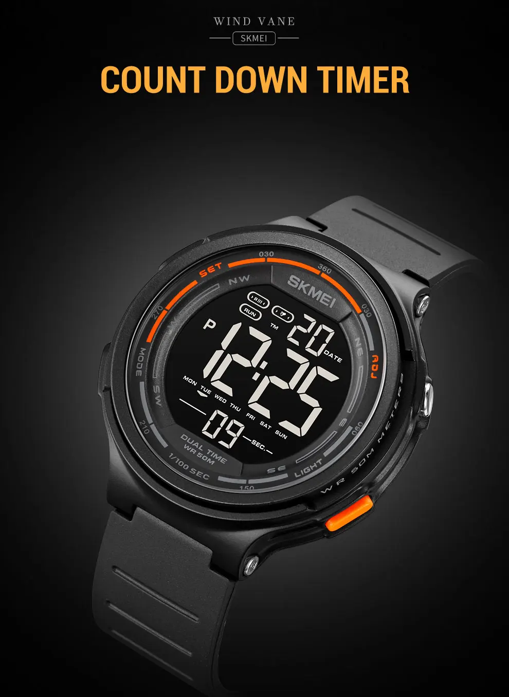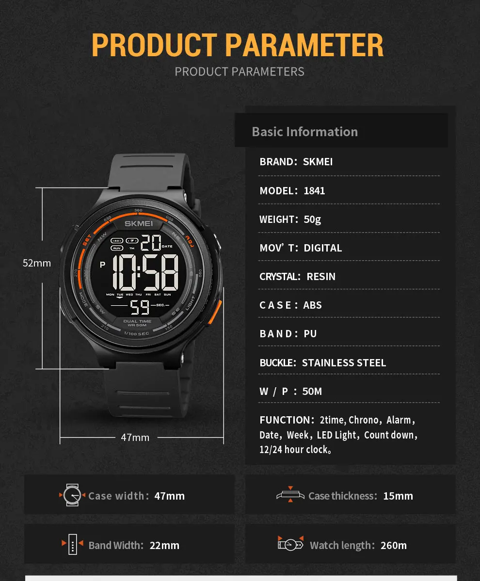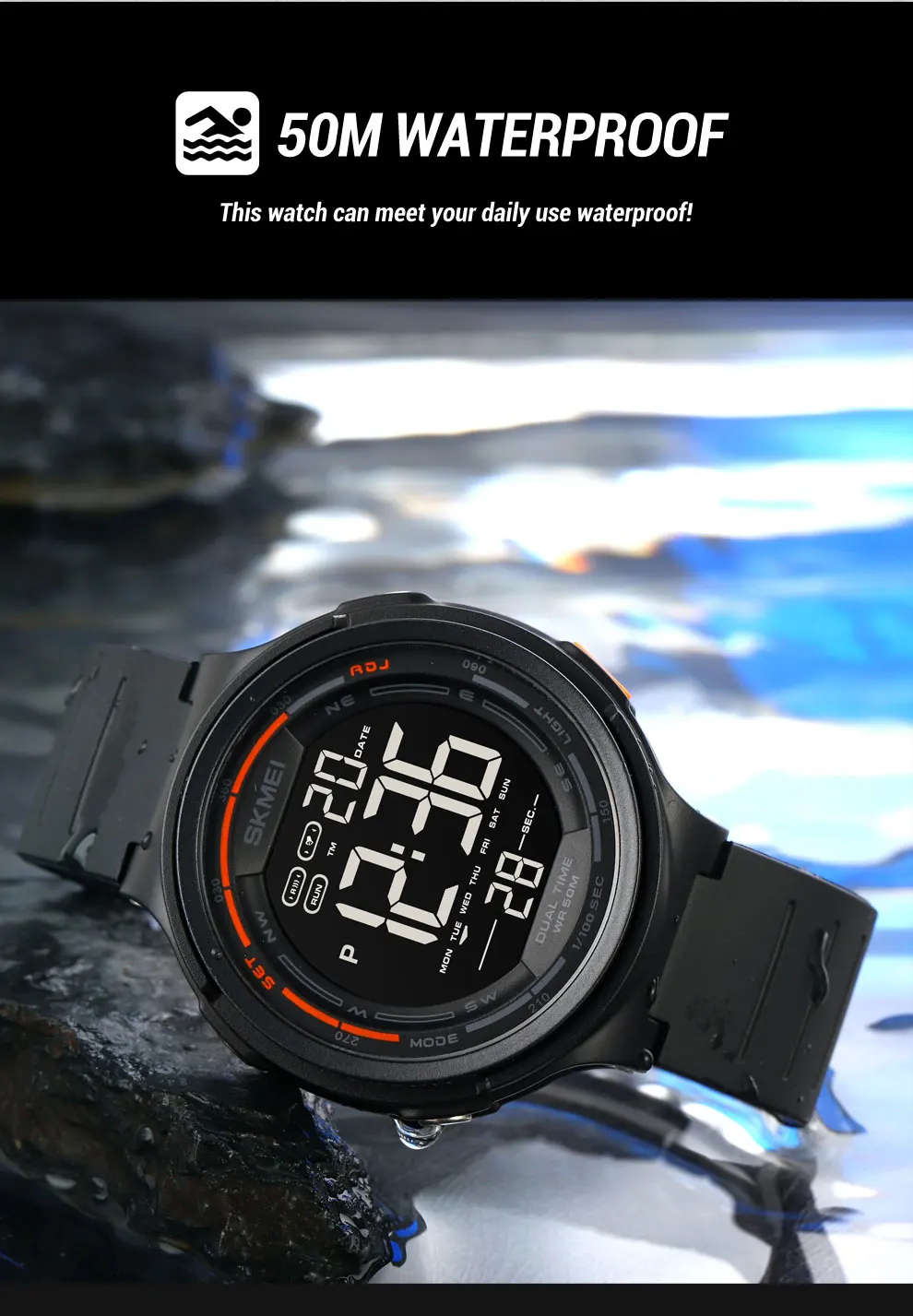 SKMEI светодиодный светильник Цифровые мужские спортивные часы 5 ба...