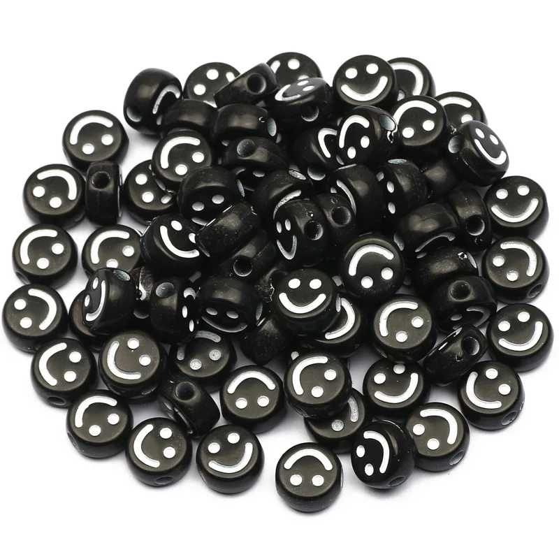 Акриловые бусины со смайликами разных цветов, звезда, цветок, сердц...