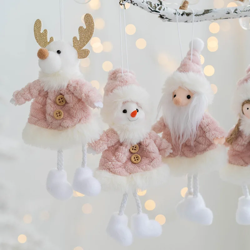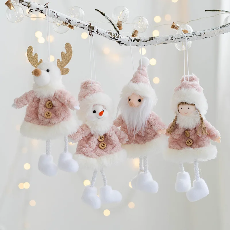 Розовая Рождественская плюшевая подвеска в виде ангела, девочки, снеговика, Санта-Клауса, снеговика, лось, кукла, украшения для рождественской елки, подарки на Рождество