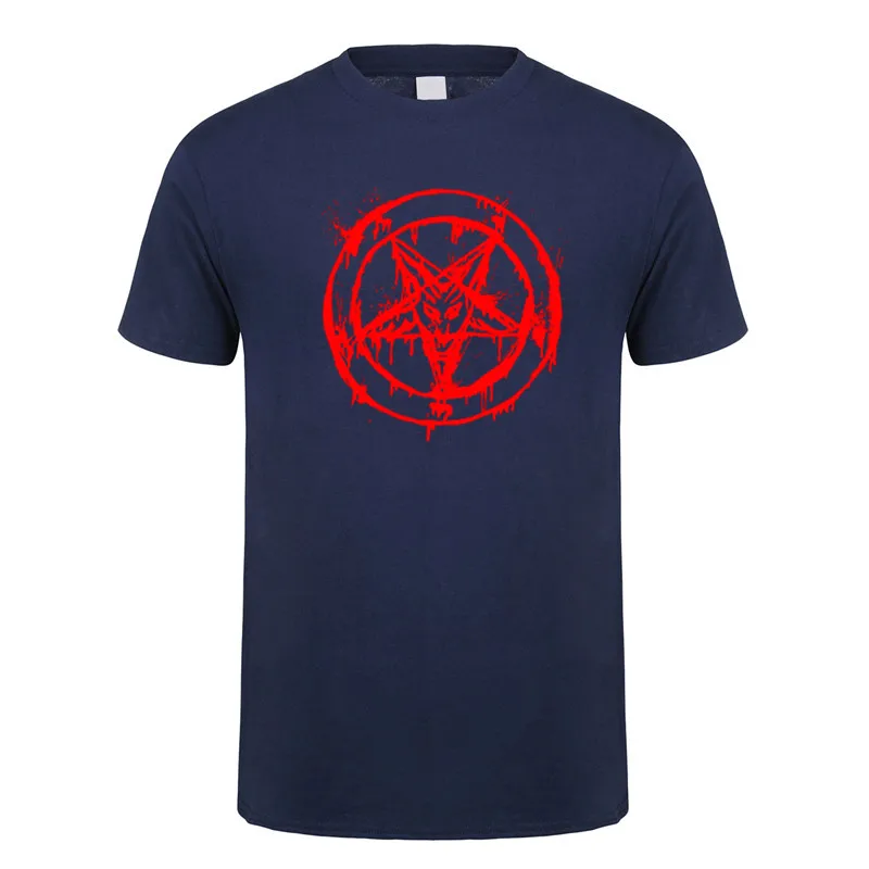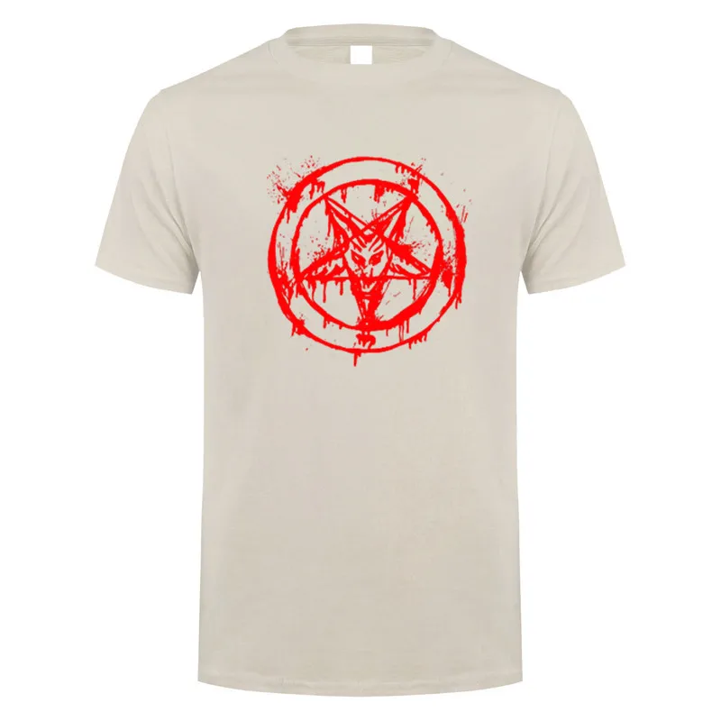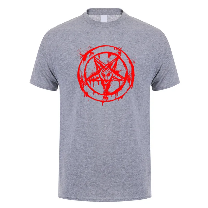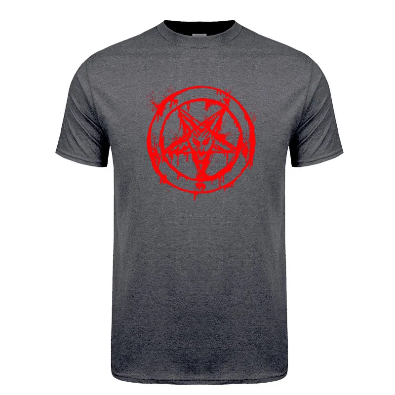 Футболка мужская с принтом пентаграммы, повседневная хлопковая Готическая рубашка с коротким рукавом сатаны, DY-075