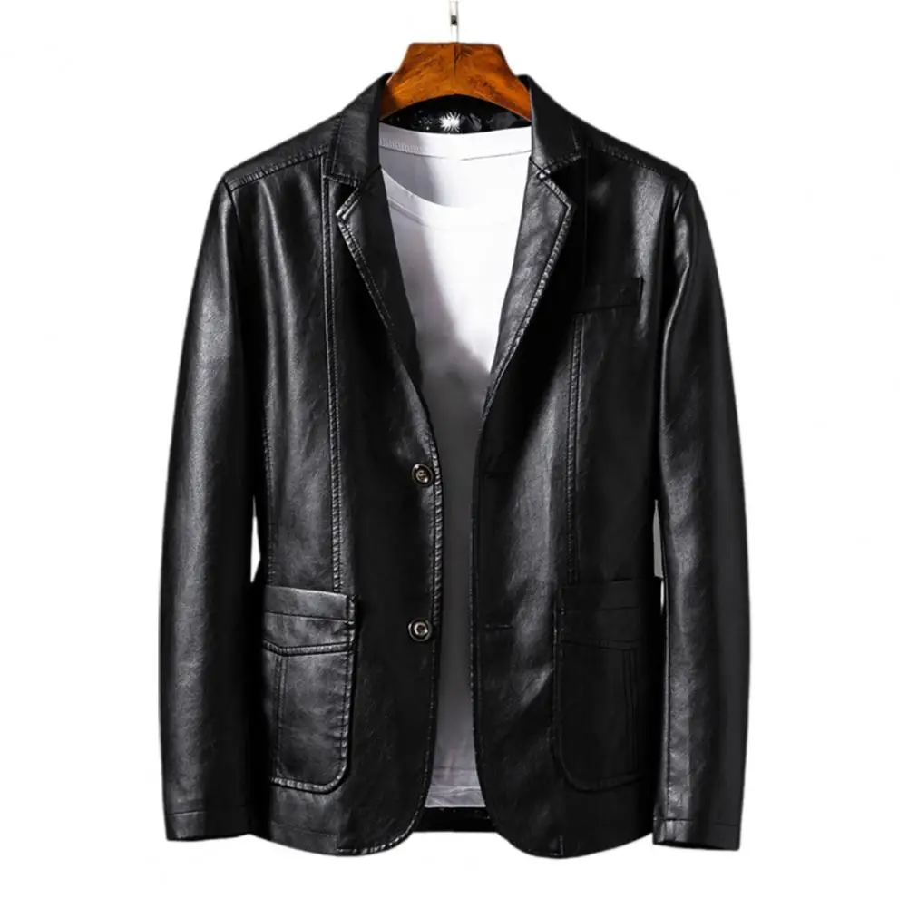 Прямая поставка! Мужской однотонный кардиган из искусственной кожи, с отложным воротником