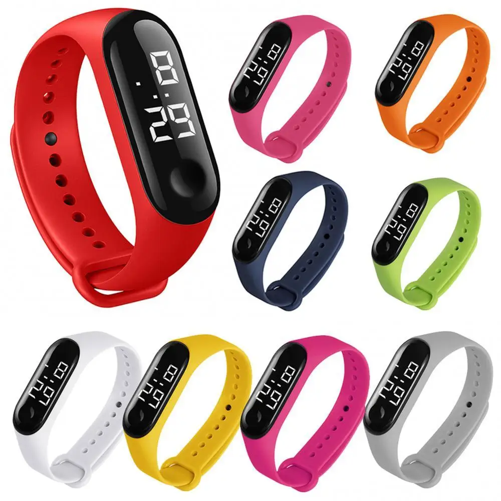 1 шт., детские цифровые часы M3, однотонные регулируемые светодиодные цифровые электронные наручные часы для спорта, часы для пар, подарки