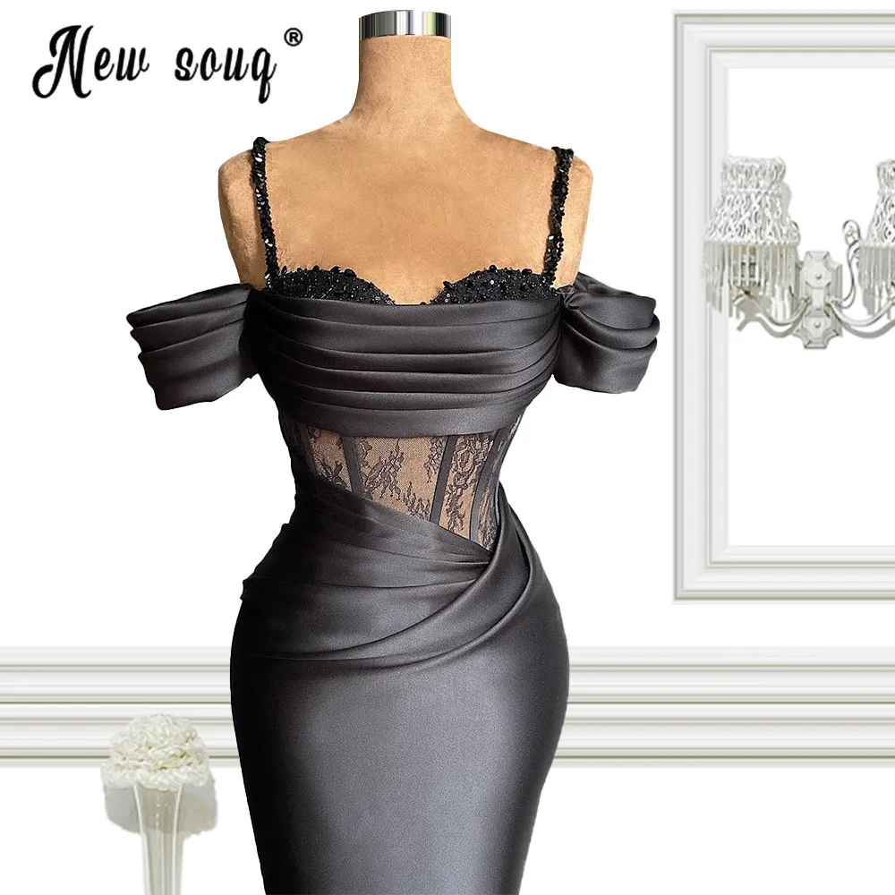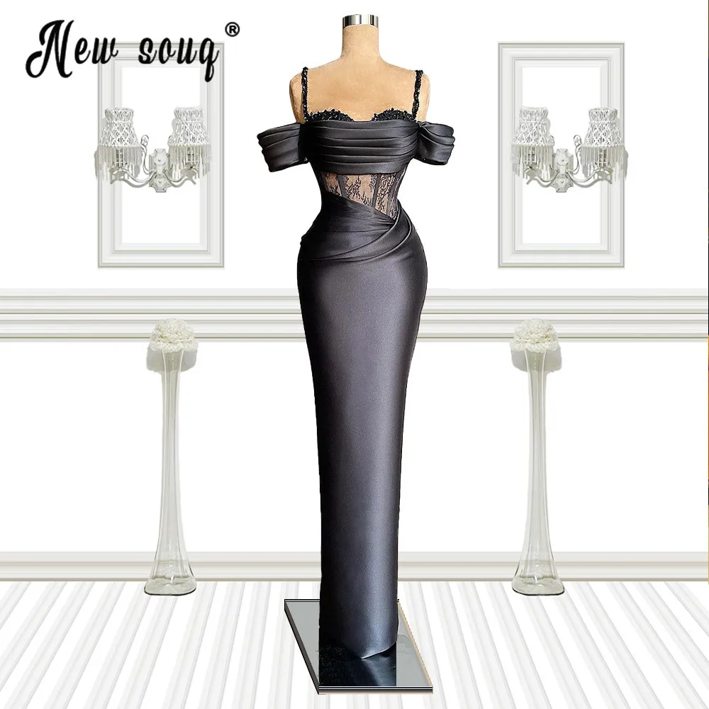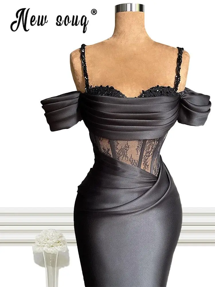 Черные кружевные вечерние платья-русалки, модель 2021 года, женское платье на бретелях-спагетти, платья знаменитостей