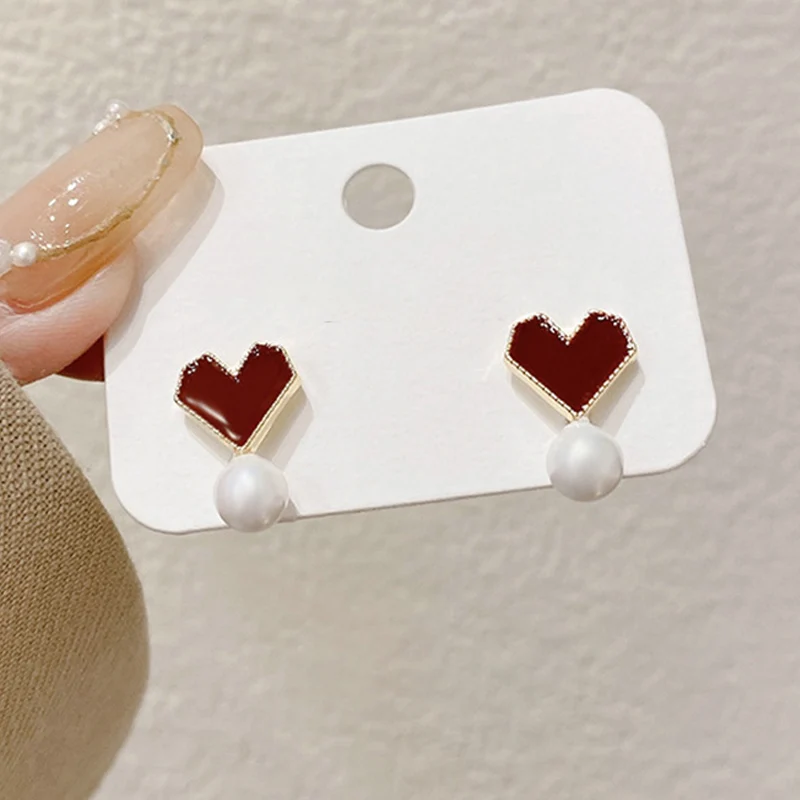 Серьги-подвески с кристаллами и бантом женские, висячие ювелирные украшения с красным жемчугом в форме сердца из циркония, на Рождество, Новый Год, праздник, Подарочная бижутерия