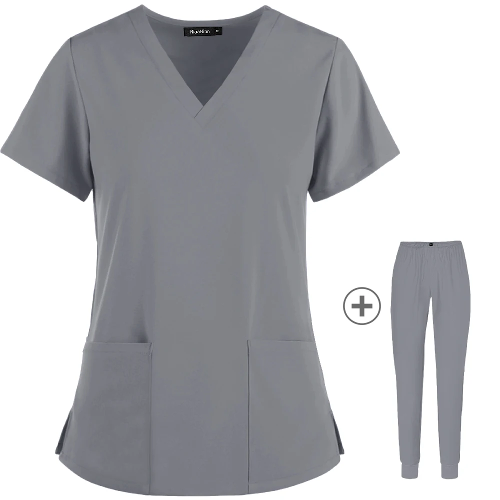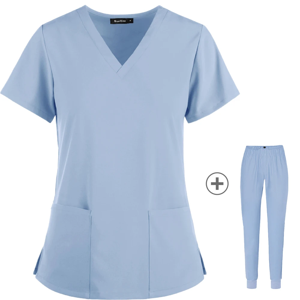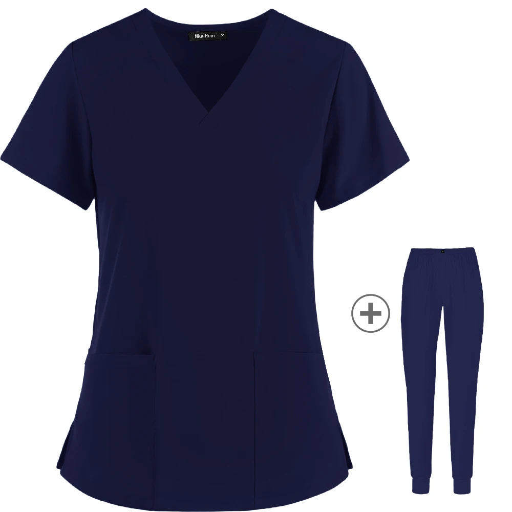 Рабочая одежда для женщин, эластичные скрабы, брюки, оптовая продажа, Рабочая Униформа для женщин, топы с коротким рукавом на шею, стоматологические скрабы для больниц, костюмы