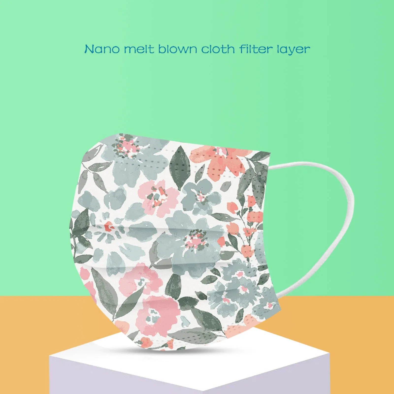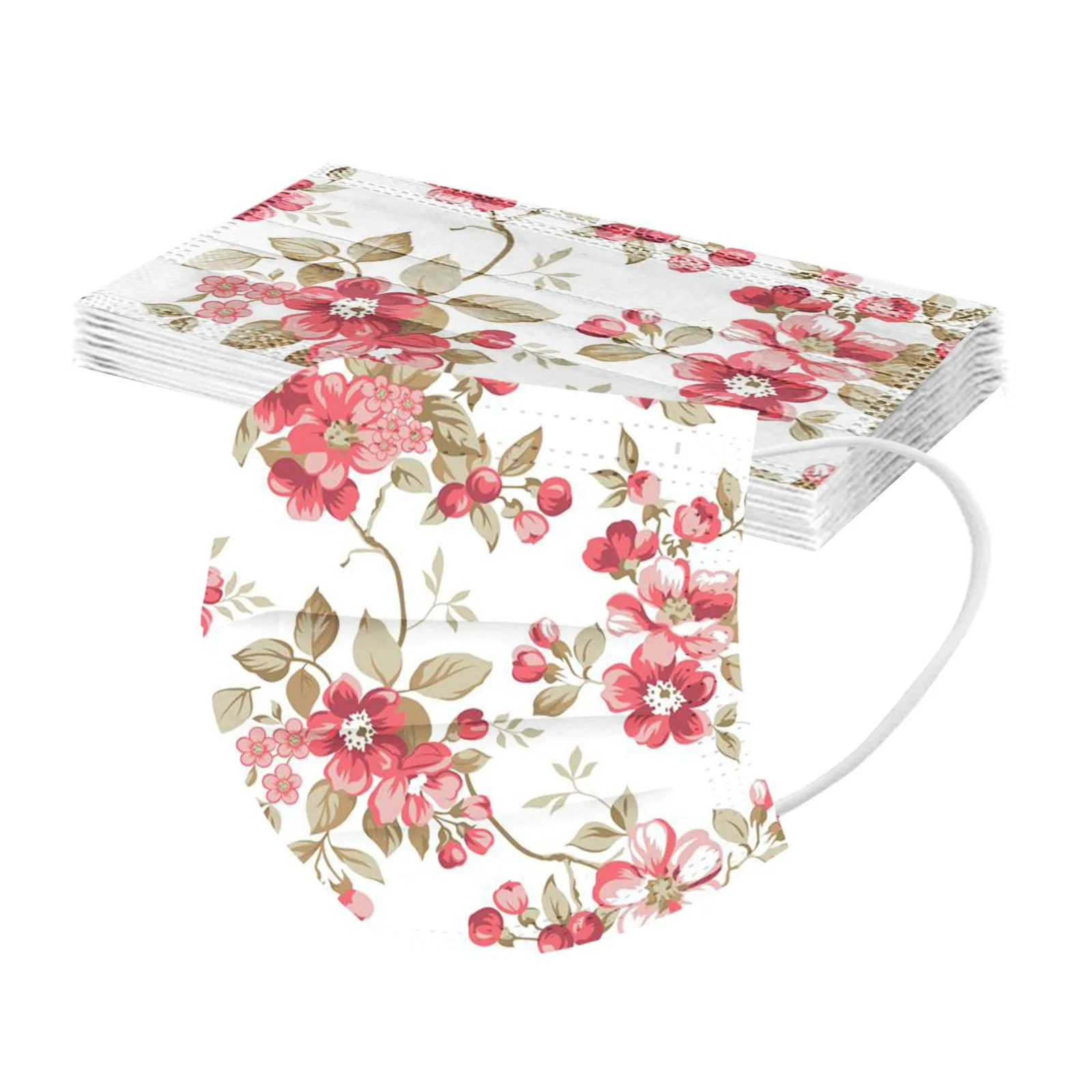 10 шт. одноразовые рождественские маски для взрослых с цветочным принтом, 3-слойная маска для лица с серьгами