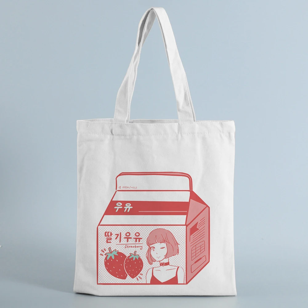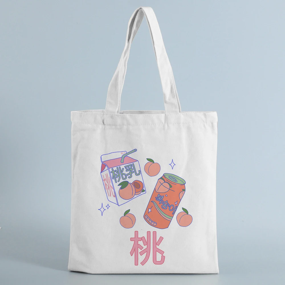 Сумка для покупок, Хлопковая Сумка-тоут с аниме принтом для продукт...