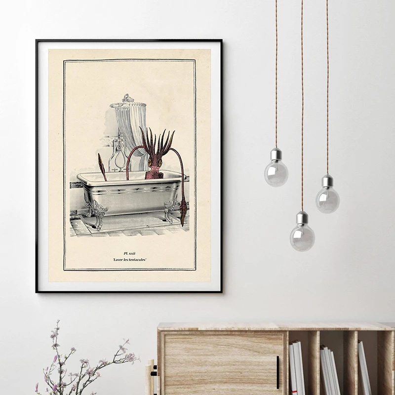 Настенный постер в стиле ретро, винтажная картина в виде хиппи, кальмара, Забавный Туалет, готика, стимпанк, для ванной комнаты, настенные картины, декоративное полотно