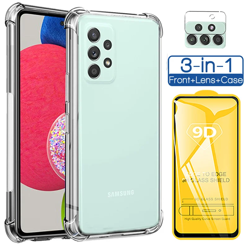 Чехол для Samsung A52 мягкий прозрачный чехол для телефона + стекло a52s чехол 360 бампер Sansung A51 5G подушка безопасности противоударный защитный чехол для Samsung Galaxy A52 s Силиконовый противоударный чехол для мобильного телефона Sansung A52 S 5g