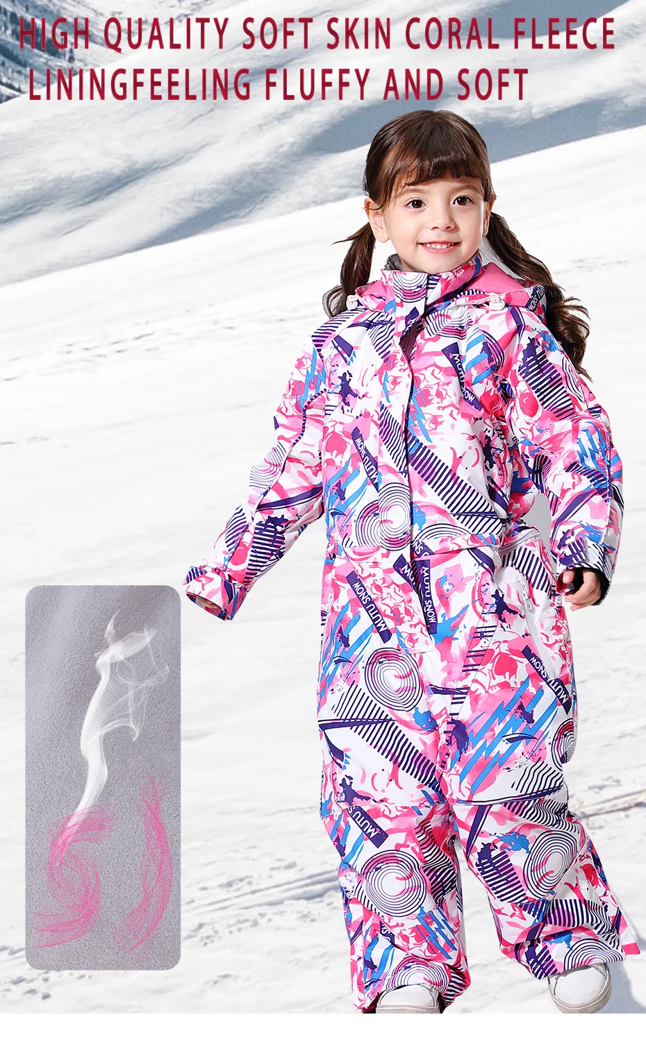 Детский лыжный комбинезон на-30 градусов, зимняя куртка для сноуборда, уличные спортивные костюмы для мальчиков и девочек, теплые водонепроницаемые детские костюмы