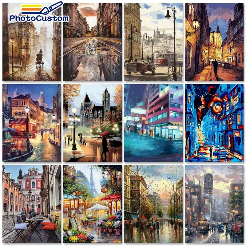 PhotoCustom 60x7 5 см краска по номерам городской пейзаж DIY маслян...