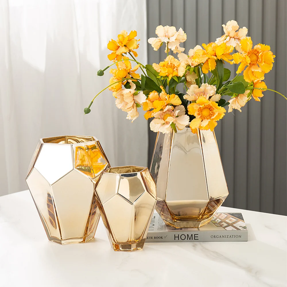 Стеклянные вазы для гостиной, аксессуары для цветов, золотые вазы для украшения интерьера дома